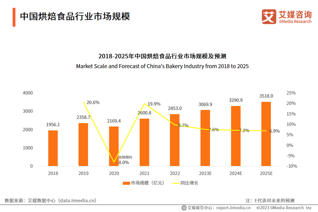 中國烘焙食品行業市場規模,數據來源:艾媒數據中心