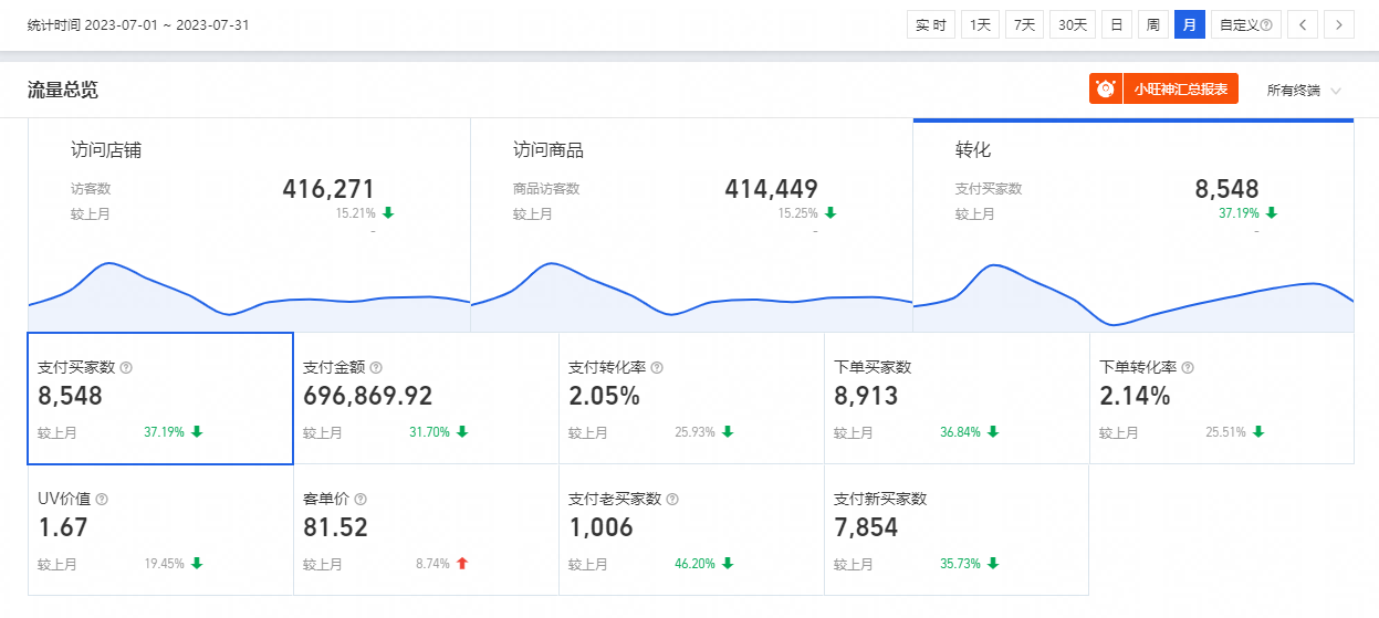 接手前,7月銷售額69W+
