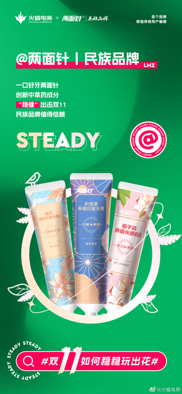 而火蝠BOSS鐘雨清,不僅會在11月10日空降兩面針官方淘寶直播間,而且11月11日還會在火蝠直播間引爆雙十一大促之夜。除了萬千豪禮相送,鐘雨清還將現場解讀火蝠電商“數智驅動百分服務,助力老字號煥新出擊”的營銷打法和本屆雙十一的“穩戰”內核。面對日顯冷清的雙十一,品牌商家要如何講出新故事,消費者又要如何優中選優呢?敬請關注火蝠穩戰雙十一營銷活動,穩穩出擊,共贏雙十一。